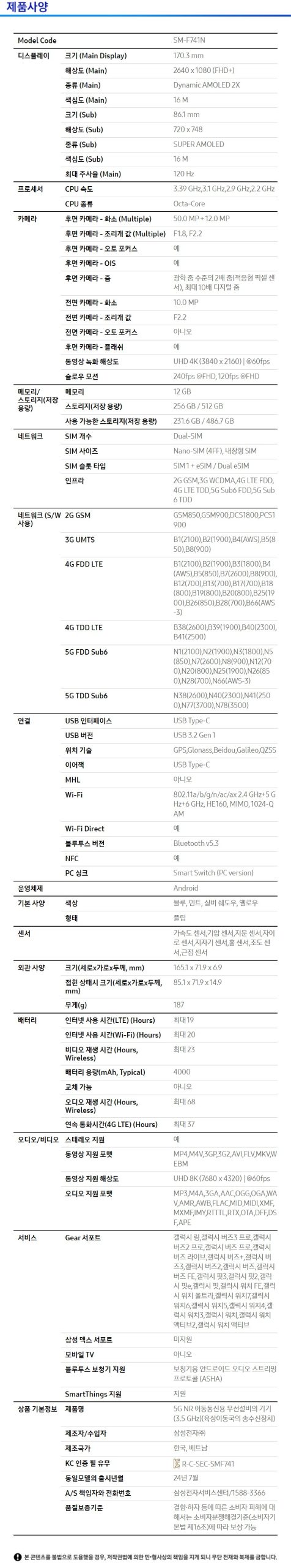 • 커버 디스플레이: 3.4인치 슈퍼 AMOLED
